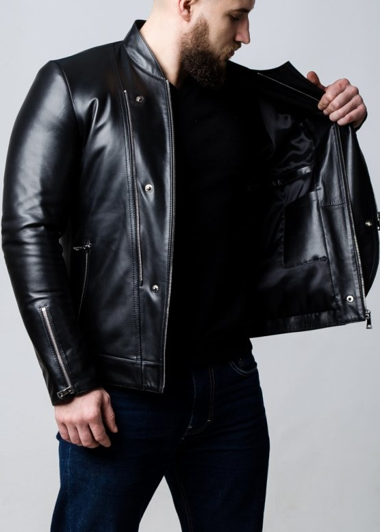 Stylish demi-season youth jacket of exclusive design – leather jacket. Made of genuine leather of the highest grade, sheepskin. A feature of the model is a slanting clasp and an offset bar, decorated with functional high-quality metal fittings. Collar – V-shaped rack. Zippers on sleeves and side pockets. The model has a more “heavier” version of the performance in the skin of the shoe (young calf), it is a denser and warmer version, not blown by the wind, which may well cause the interest of motorists. Italian leather, soft to the touch, 1-year warranty from the E&H Leather manufacturer.