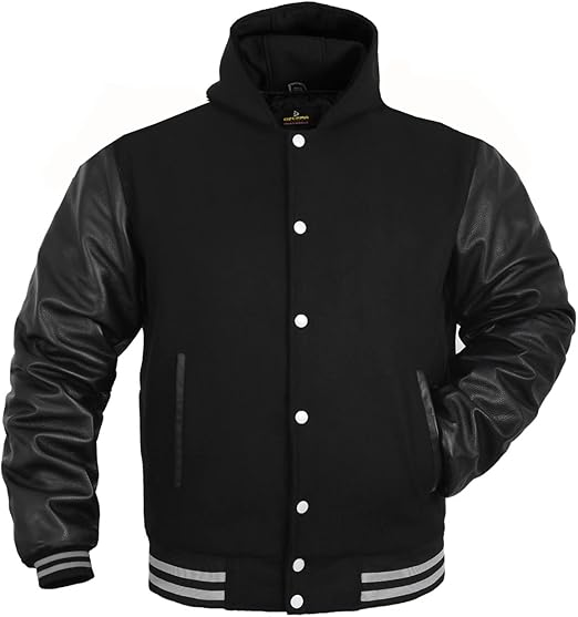 - ✔ Premium Materials – Combines genuine leather sleeves for durability with a soft wool-blend body for warmth and classic style, finished with contrast trim and plastic-coated metal buttons for an authentic letterman look.